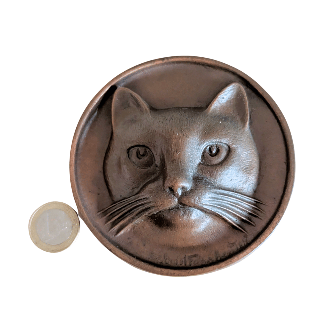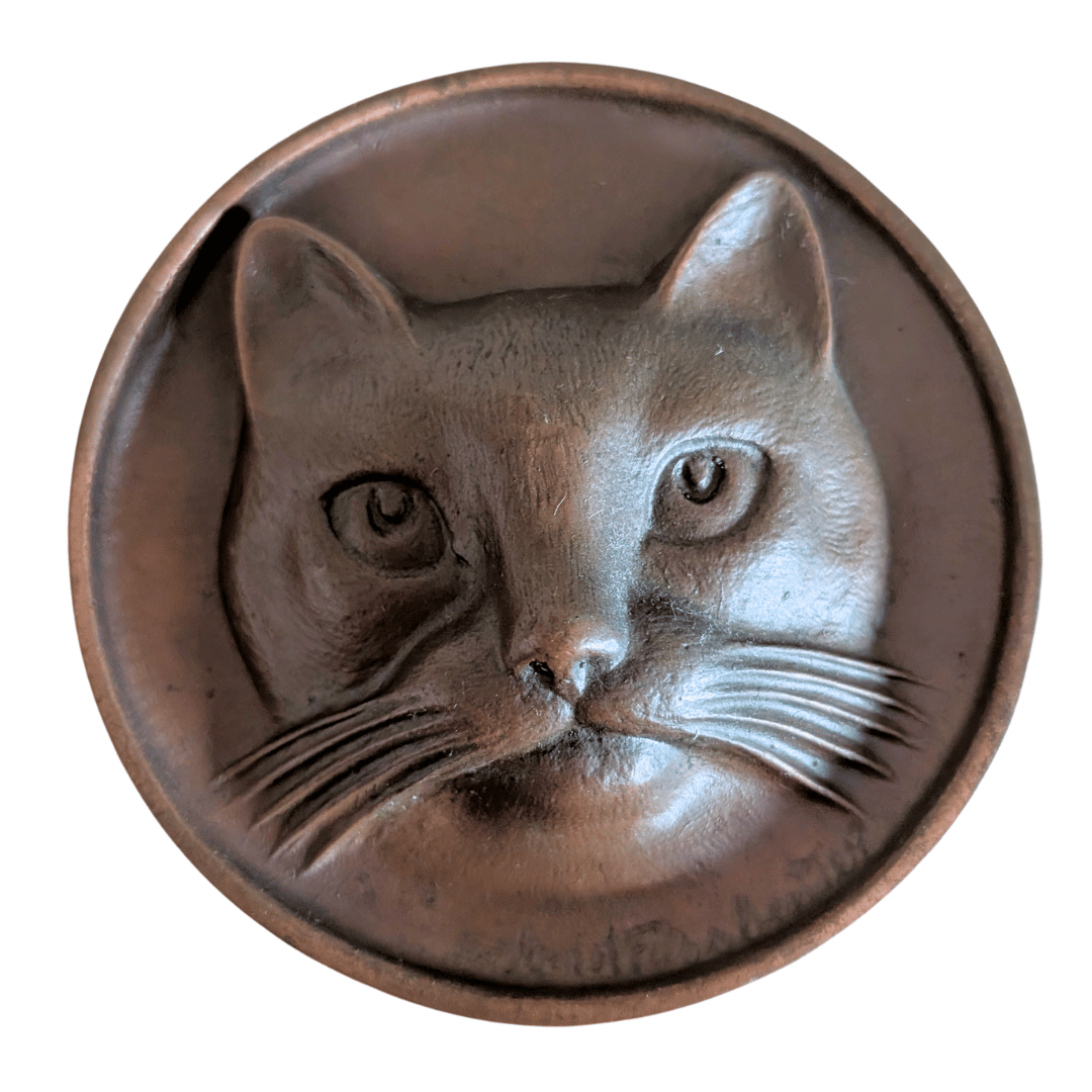 - Antike Relief-Tafel eines Katzenkopfes