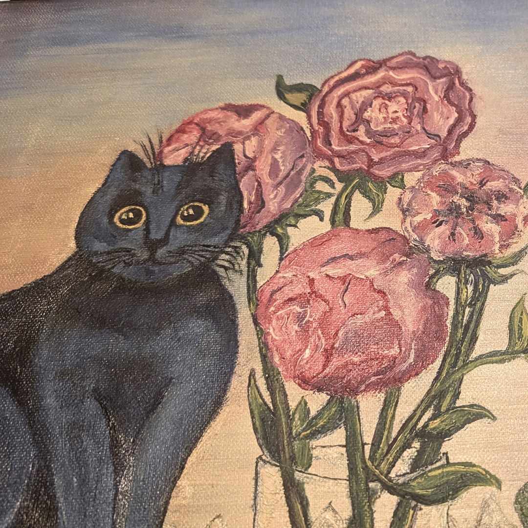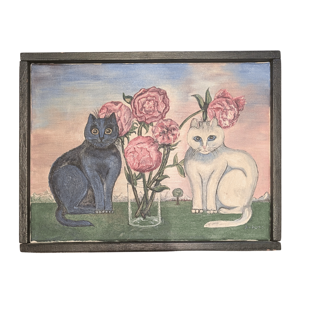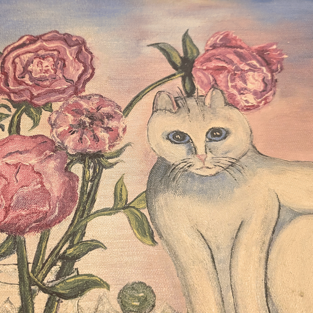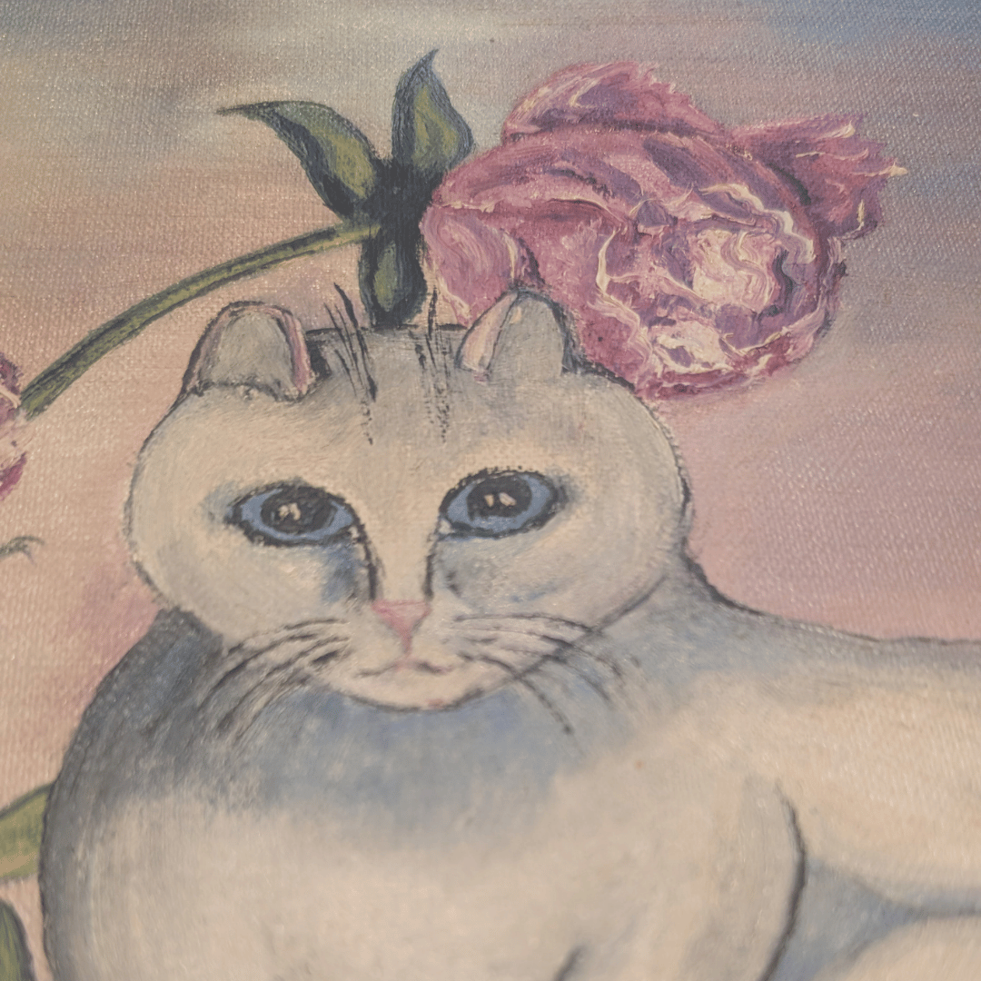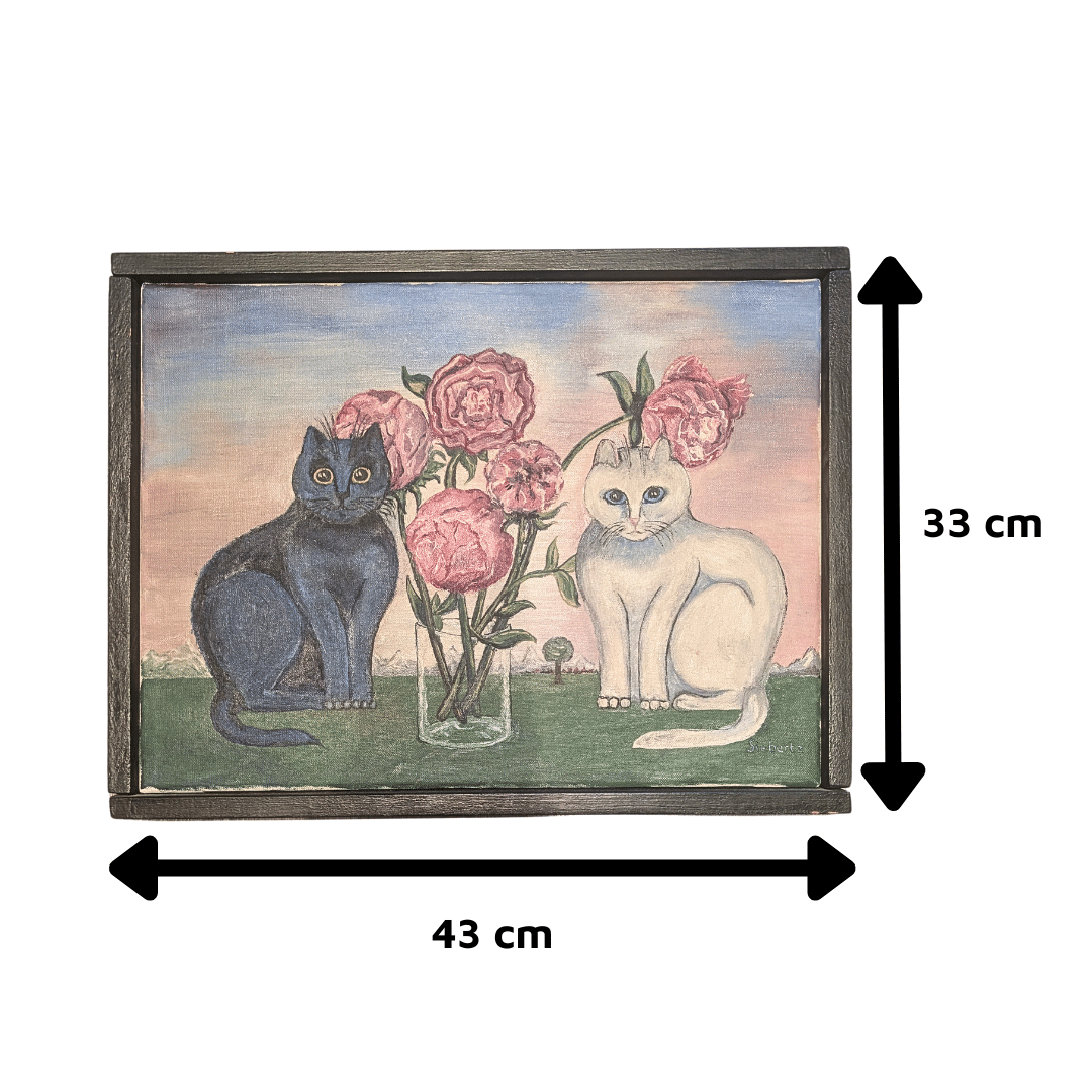 - Einzigartiges Original-Gemälde zweier Katzen mit Blumen