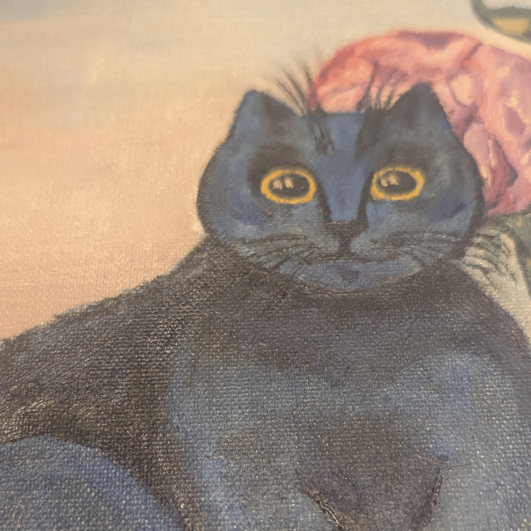 Katzen-Gemälde, Naive Malerei, Öl auf Leinwand