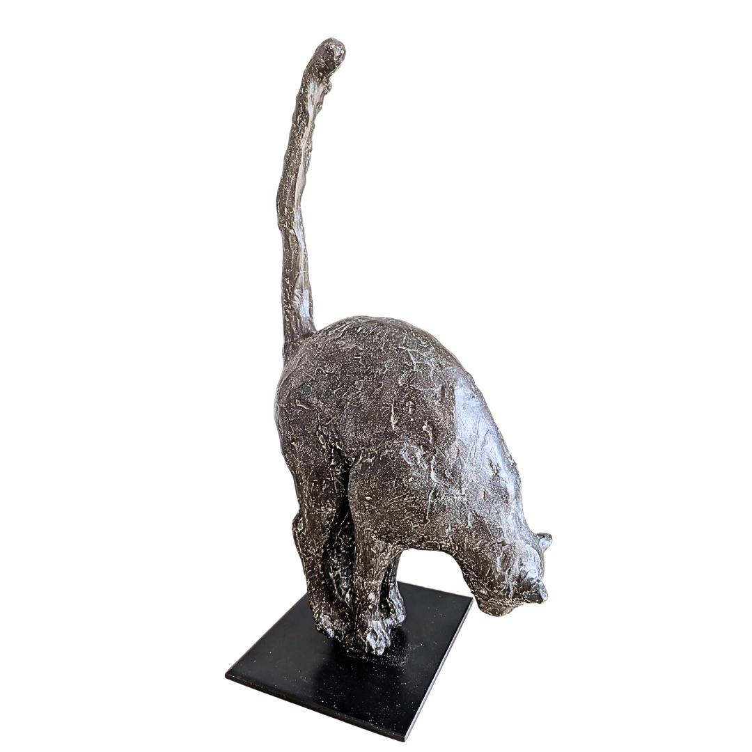 - Ein wahres Unikat: eine wunderschöne handmodellierte Katzen-Skulptur aus massiver Bronze, die herabschaut und den Schwanz hebt